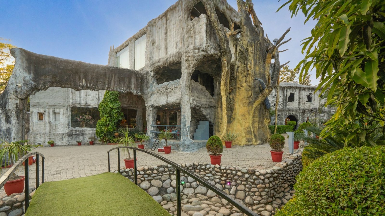This cave theme luxury 5-star resort in jim corbett goes above and beyond, offering exclusive amenities like a premium spa to rejuvenate the mind and body, and a soundproof disc where guests can enjoy music and celebration without disturbance at their intimate as well as hyped moment of their life with the ethereal, serene and magical location in the heart of forest—an experience to be remembered!